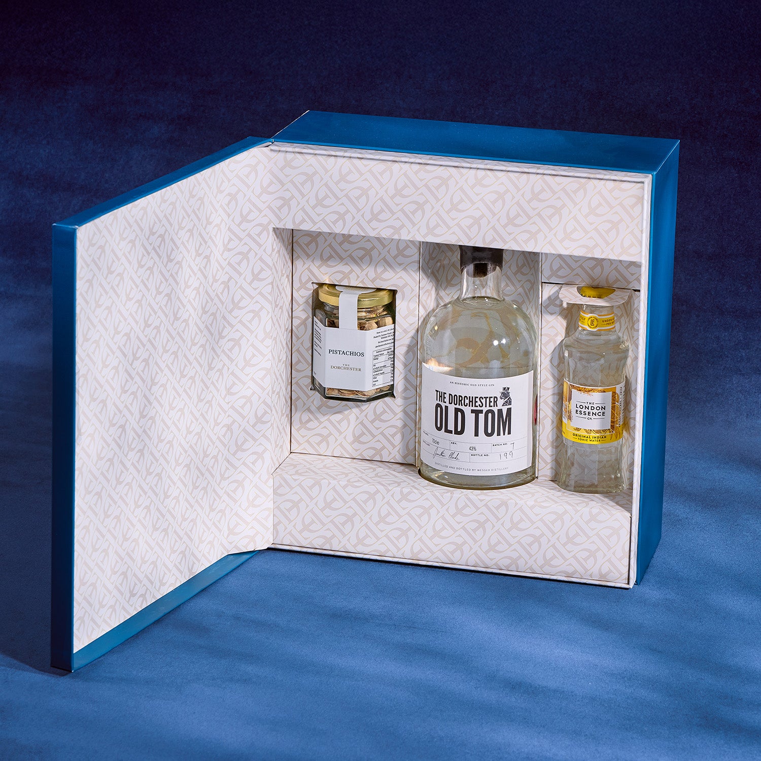 Includes a bottle of Old Tom gin (70cl bottle, 43% ABV), Bermondsey Tonic Water (200ml) and a jar of seasonal nuts.